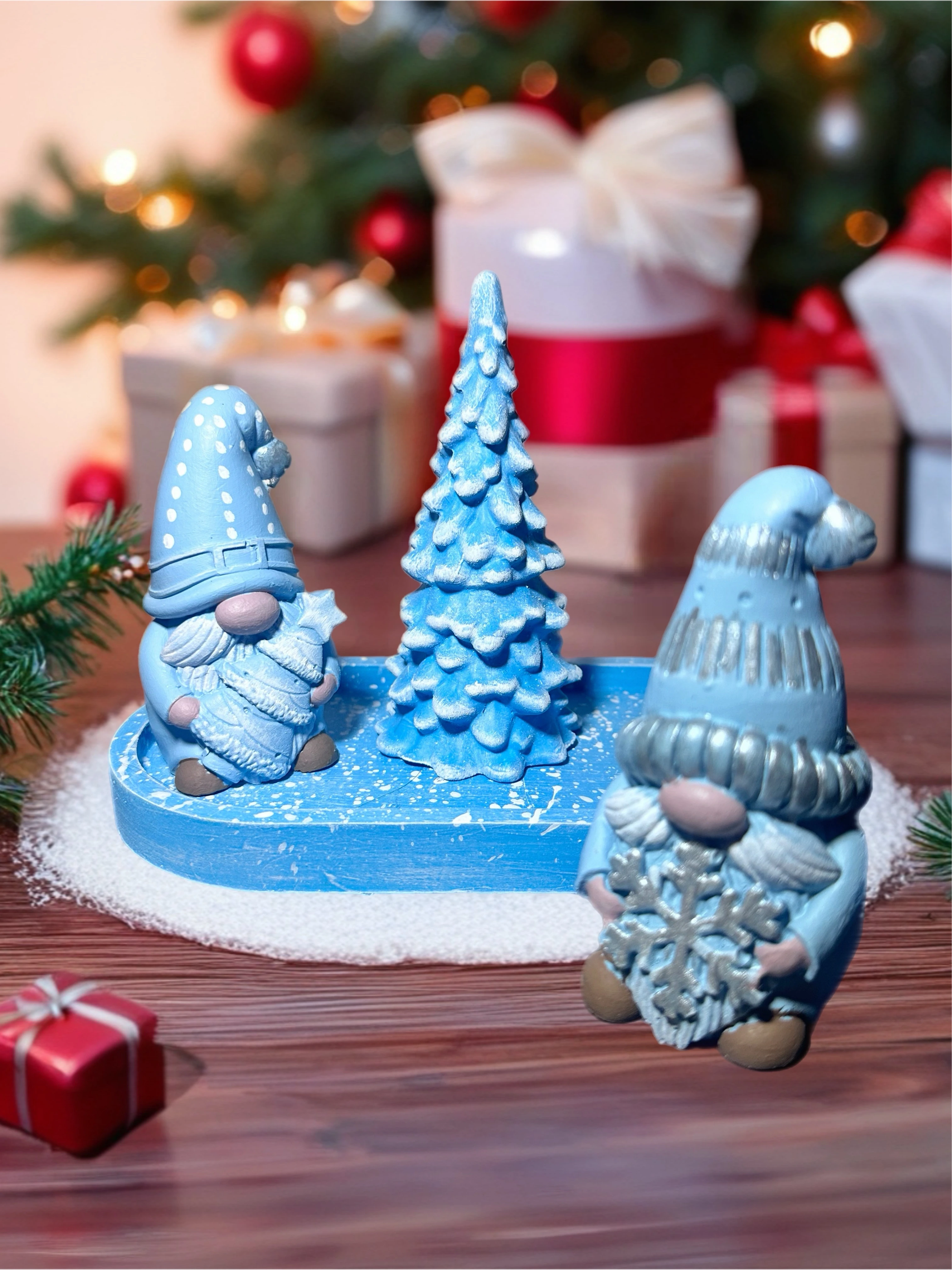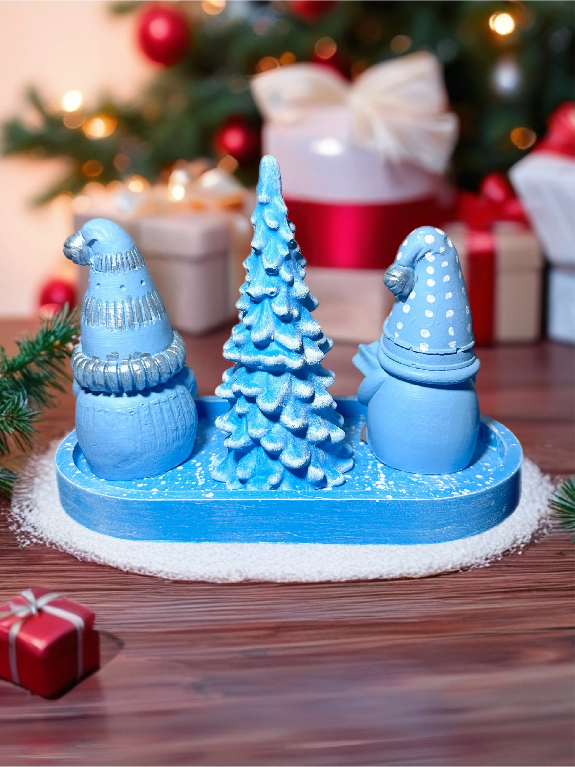 El Yapımı Yılbaşı Cüce Seti – Mavi Tonlar | Dekoratif Noel Masa Süsü
